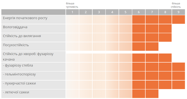 - Стійкий до ураження пухирчастою сажкою, фузаріозом та гельмінтоспоріозом