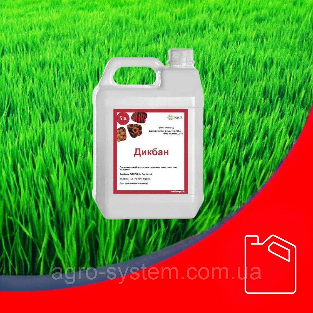 Дікбан, 48% в. р. к. це системний післясходовий гербіцид. Діюча речовина поглинається як листям, так і кореневою системою бур'бур'янів. Припиняється синтез хлорофілу та впливає на ділення клітин у меристемі бур'бур'янів, що призводить до їх швидкого відмирання.